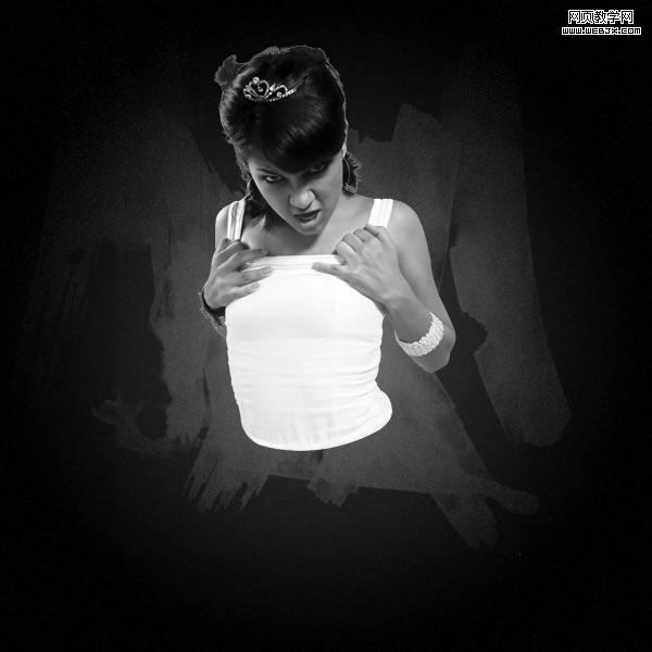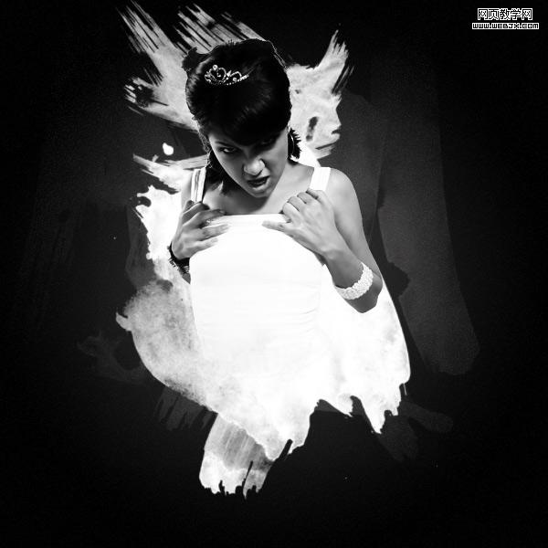 步驟 4、在人物層下方創(chuàng)建新圖層,并再次應(yīng)用水彩筆刷,達(dá)到突出人物的效果。