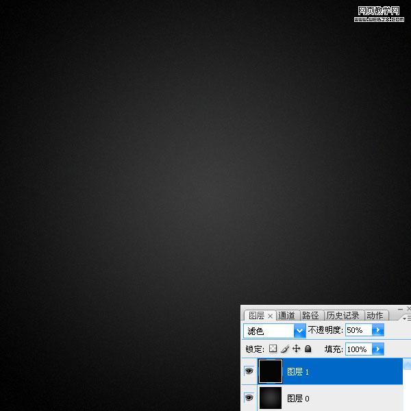 步驟 1、創(chuàng)建畫布,并用徑向漸變填充,顏色為#3a3a3a 和黑色。創(chuàng)建新圖層,并用黑色填充,濾鏡 >> 雜色 >> 添加雜色,數(shù)量為7,平均分布。并將該層混合模式設(shè)為“濾色”,不透明度設(shè)為“50%”。
