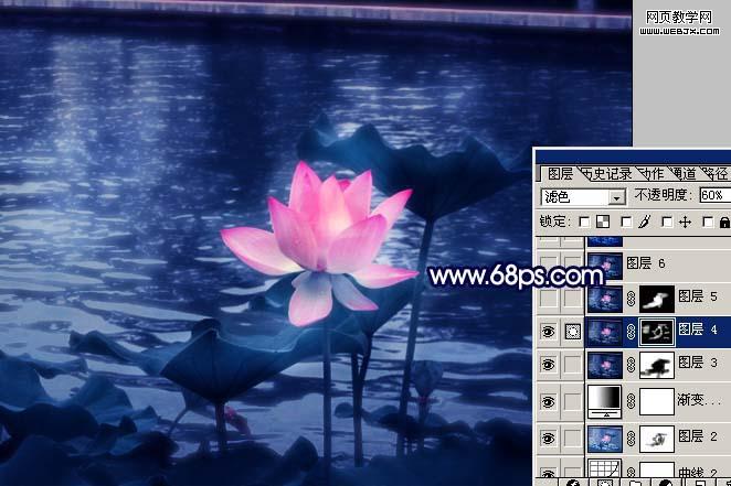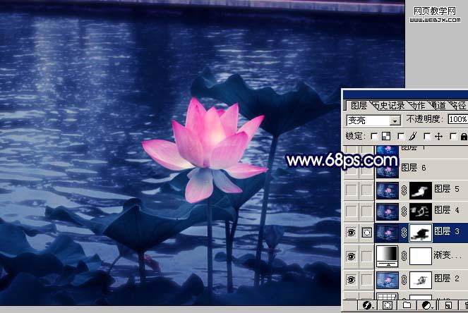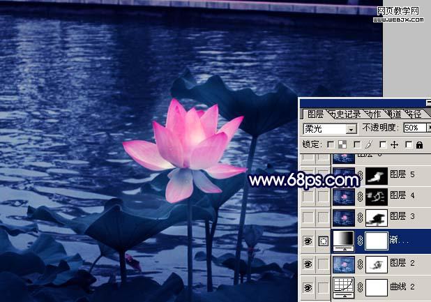 <圖12> 6、新建一個圖層,按ctrl + alt + shift + e 蓋印圖層,把圖層混合模式改為“正片疊底”,加上圖層蒙版,用黑色畫筆把荷花及部分荷葉擦出來,如圖13。