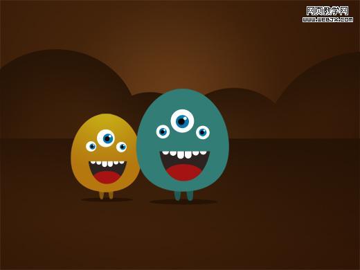 15、繪制角色的卡通小腳: 16、繪制一個橢圓的小陰影: 17、復制操作: 18、效果如下了: