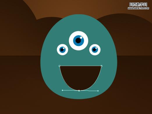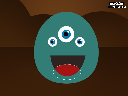 11、設置前景色為#a51313.,創(chuàng)建一個新圖層,橢圓工具繪制嘴的部分圖形: 12、設置前景色為白色,選擇圓角矩形工具,繪制牙齒: 13、重復操作: 14、選擇角色,設置漸變填充: