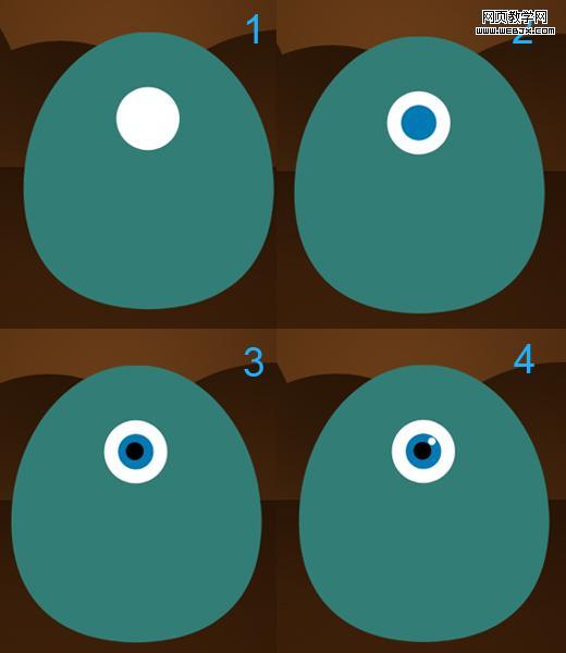 3、橢圓工具繪制如下幾個圓: 4、變動圖層位置: 5、新建立圖層,設置顏色為327d76繪制一個橢圓,形狀如下所示: 6、設置幾個點,改變圖形形狀:
