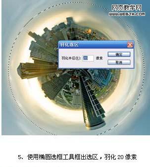 4、選擇涂抹工具和仿制圖章工具修復拼合處的縫隙。 5、選用橢圓選框工具框出選區,按ctrl + alt + d 羽化20像素。 6、按ctrl + shift + i 反選,按ctrl + j復制到新的圖層,執行:濾鏡 > 模糊 > 高斯模糊,數值為5。