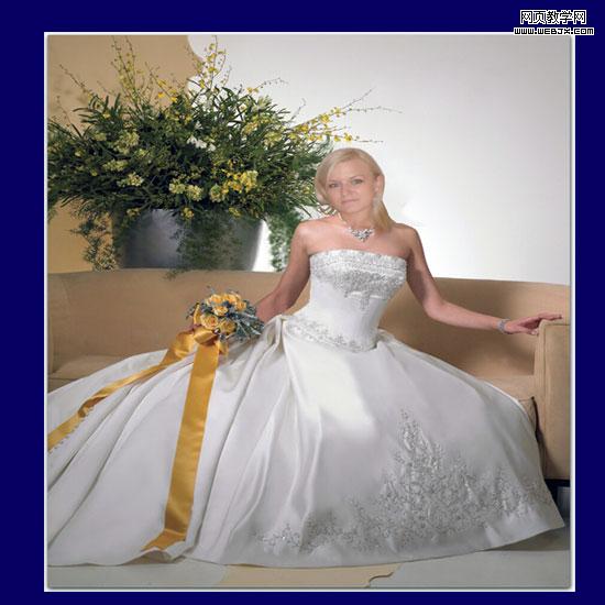 現在我們刪除美女婚紗照片的邊緣,我們這里不在詳細給大家講照片邊框的制作方法了,我們僅僅用柔角畫筆,設置顏色為#cbcbd9,進行繪制就可以了。