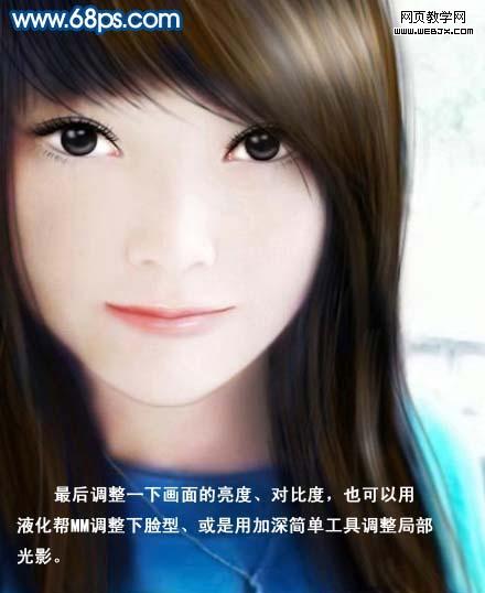 13、最后調(diào)整一些畫面的亮度,對比度,也可以用液化工具調(diào)整人物臉型,或是用加深/減淡工具調(diào)整局部光影,完成最終效果。