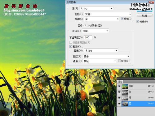 1、打開原圖素材,點通道面板,選擇藍色通道,執行圖像/應用圖像命令。2、選擇綠色通道,執行圖像/應用圖像命令。3、圖層/新建調整圖層/曲線。