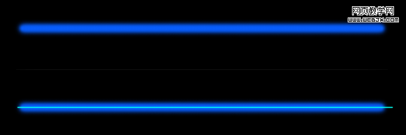 創建新文檔大小為700×700 pixels,填充顏色為黑色。然后選擇18px的柔角筆刷,設置前景色為#075cfa,然后再新建立一個圖層再用大小2px的顏色#00fff0的一條線,放在上面那個筆刷的上面,效果如下。