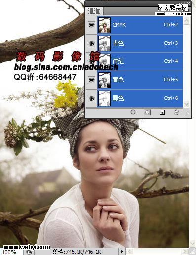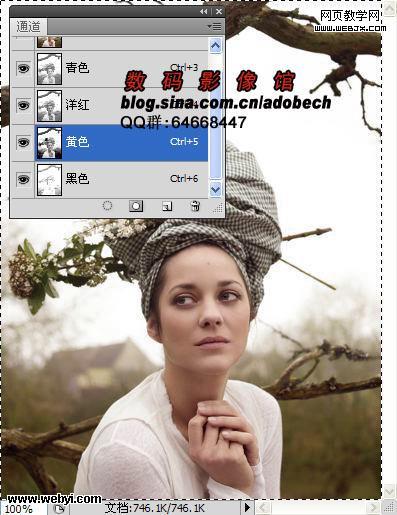 1、打開原圖素材,把背景圖層復(fù)制一層,選擇菜單:圖像 > 模式 > cmyk 顏色,然后點通道面板,如下圖。 2、點黃色通道,按ctrl + a 全選,按ctrl + c 復(fù)制,然后點洋紅通道,按ctrl + v 粘貼。 3、回到圖層面板,加上圖層蒙版,用黑色畫筆把人物部分擦出來。