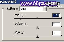 6、創建色相/飽和度調整圖層,參數設置如圖12,效果如圖13。