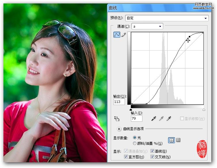 再按ctrl+m鍵 調(diào)出曲線窗口后把通道選為"a" 調(diào)節(jié)如圖