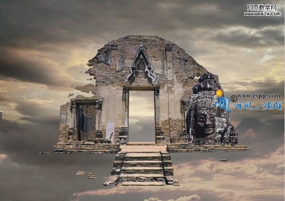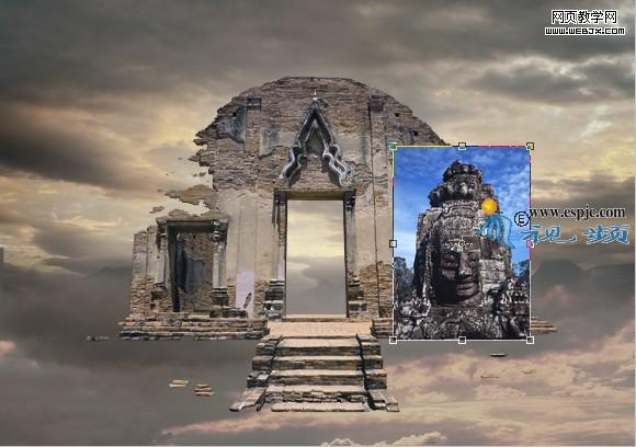 12、選擇“曲線2”,打開“素材4”如圖21所示。用移動工具拖到文件中,得到圖層4.結合自由變換控制框調整圖像大小及位置,效果如圖22所示。按照第6步的方法使用鋼筆工具將佛的頭部勾畫出來,轉換成選取,添加圖層蒙版得到如圖23所示。