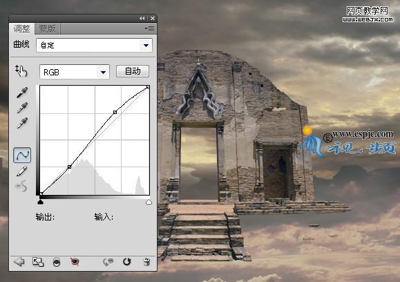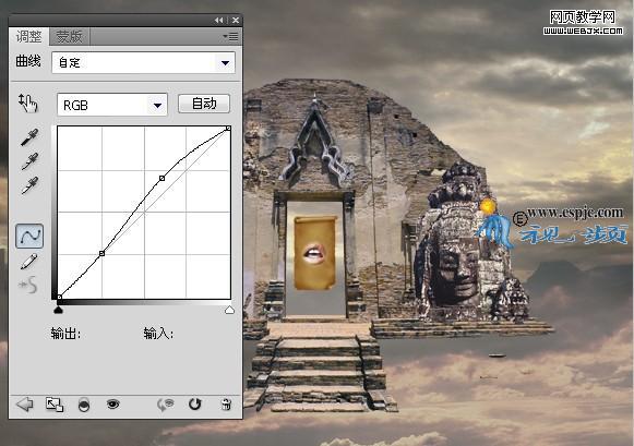 3、單擊創建新的填充或調整圖層,在菜單中選擇“曲線”命令,并設置其對話框如圖4所示,確定后在圖層調板里得到“曲線1”圖層。按ctrl+alt+g常見剪貼蒙版,得到如圖5所示效果。