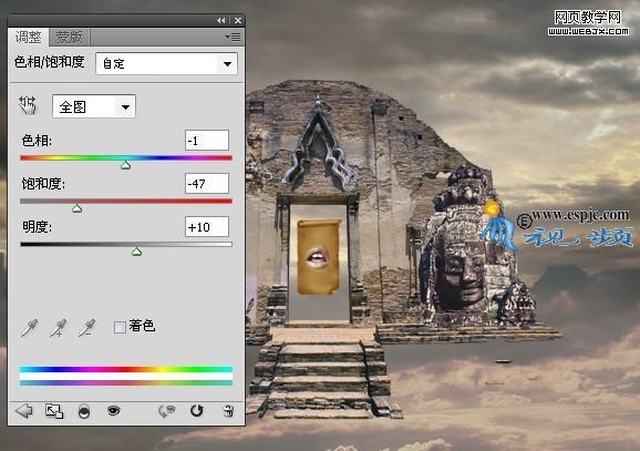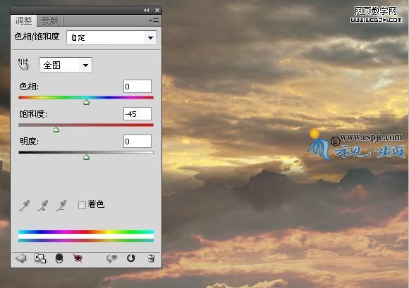 <圖5> 4、按照上一步的操作方法對圖像進行“色相/飽和度”調整,但是不創建剪貼蒙版,并設置其對話框如圖6所示,得到如圖7所示效果。