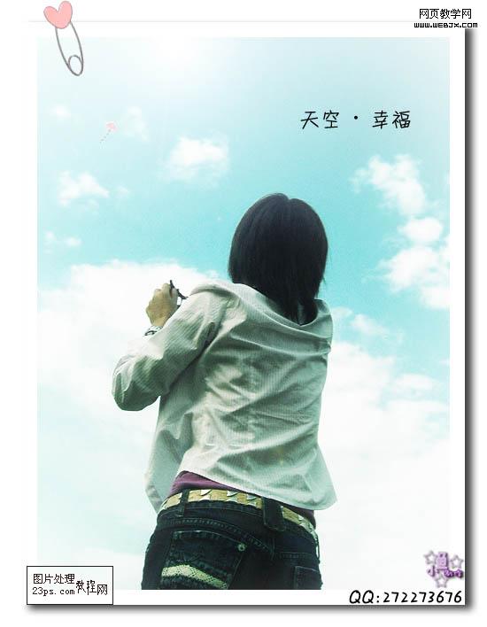 7、蓋印圖層,加上亮角和鏡頭光暈,效果如下: 8、加上邊框、別針和文字,完成最終效果: