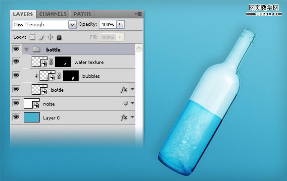 拼合bottle、bubbles、"water texture圖層后按ctrl+g命名為bottle。