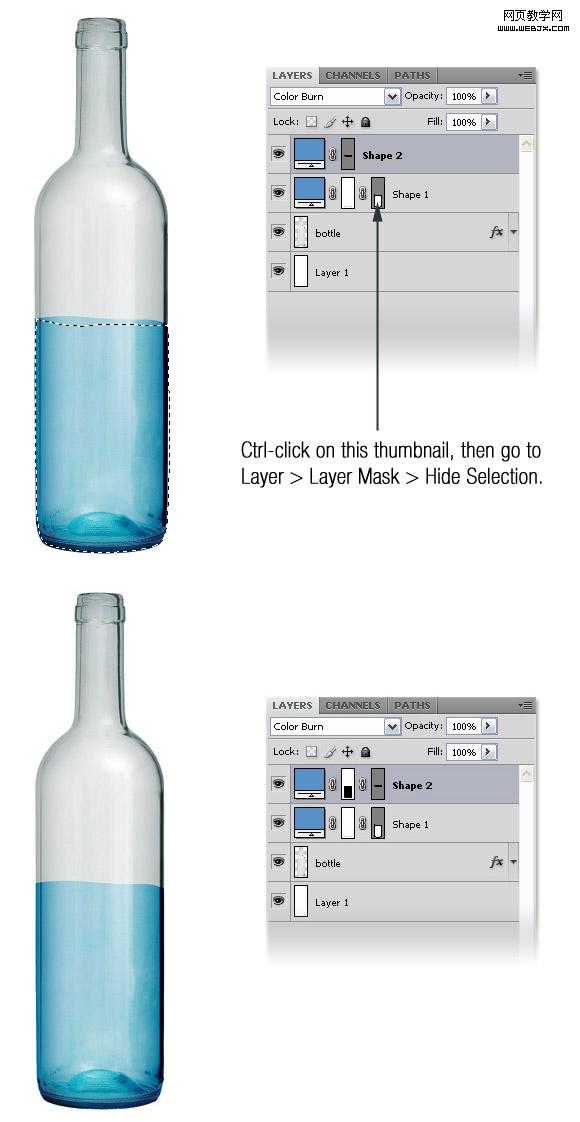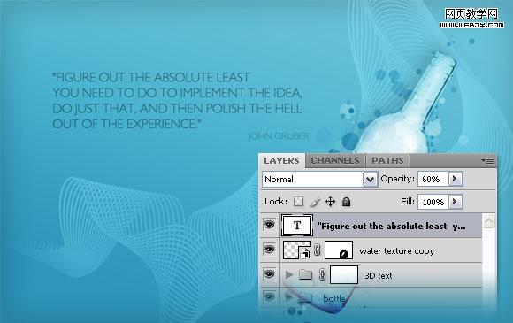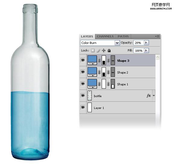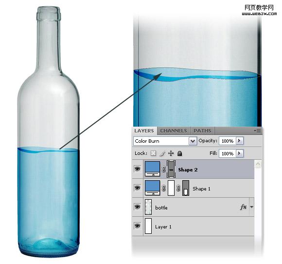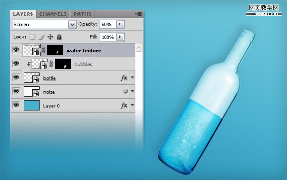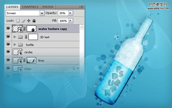 本photoshop教程講解如何把一個(gè)空瓶子裝水的效果,最終效果你可以當(dāng)做一個(gè)墻紙,教程中主要利用photoshop鋼筆工具,圖層樣式等基本工具來(lái)繪制。