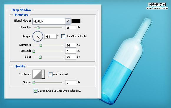 然后使用魔術(shù)棒工具把瓶子扣取出來(lái),放到背景層的上面。之后設(shè)置圖層樣式。
