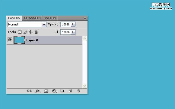 首先我們創(chuàng)建一個(gè)文檔,雙擊把背景層解鎖,然后設(shè)置填充色為#48b1ce填充背景。