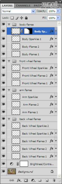第12步:選擇front wheel flames組,之后創建曲線調整層。
