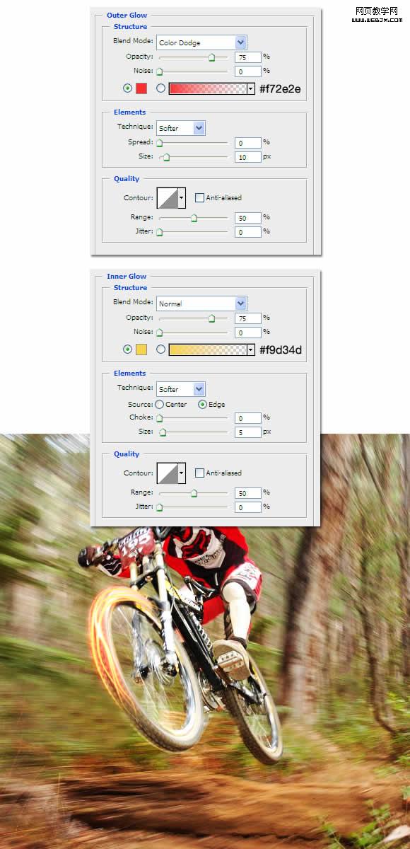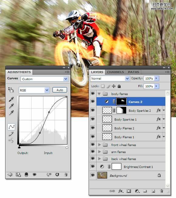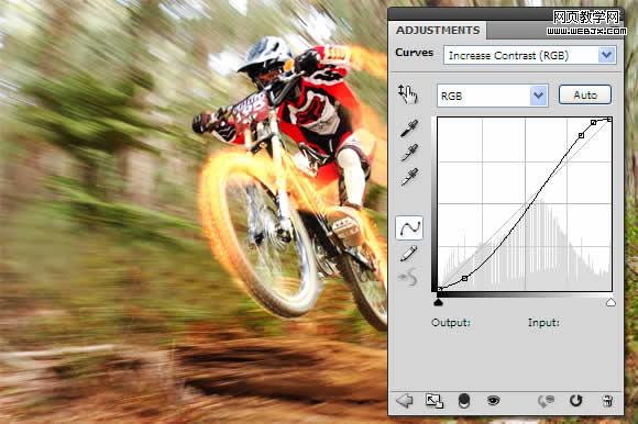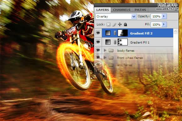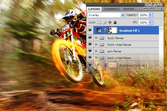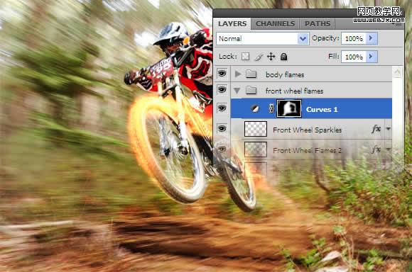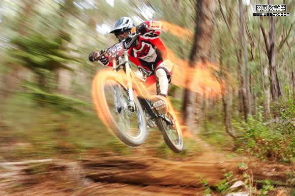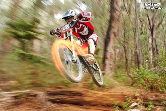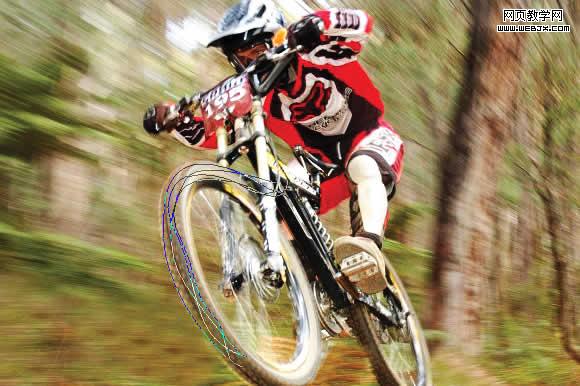 photoshop制作火一般的自行車下坡賽,主要是對照片中自行車的修飾添加火的特效。