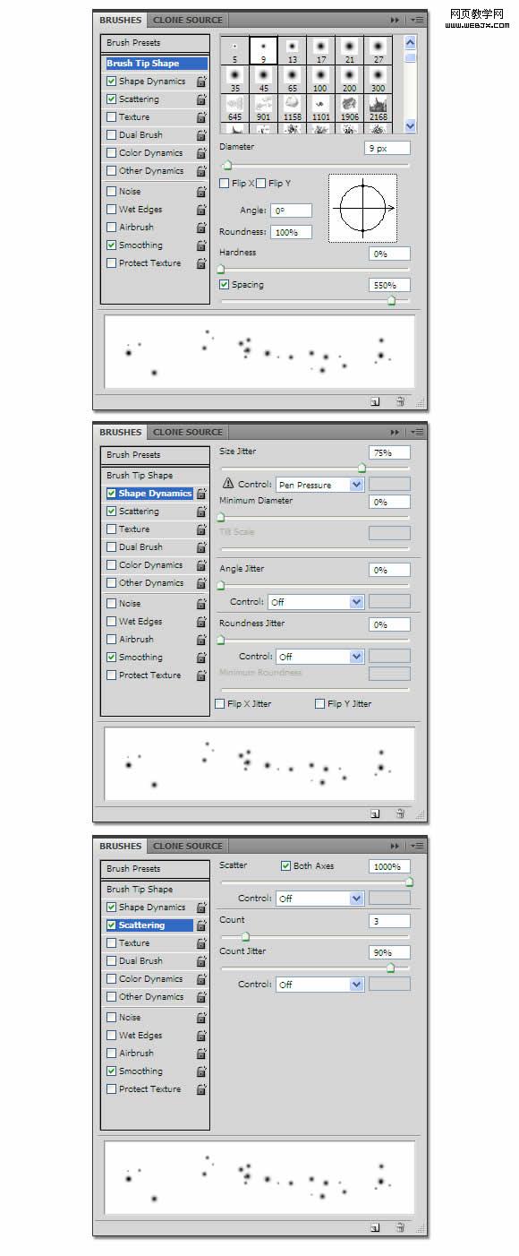 第9步:下面我們添加火花特效,使用畫筆,選擇畫筆工具,然后按f5打開畫筆窗口設置如下。