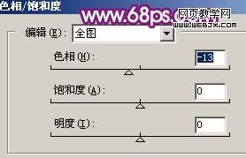 10、創建色相/飽和度調整圖層,參數設置如圖16,效果如圖17。