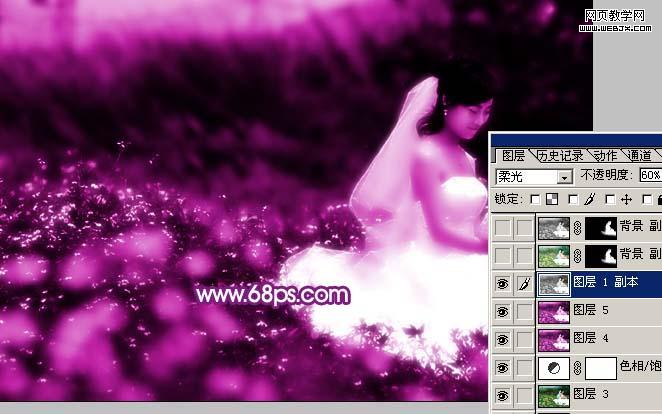5、把背景圖層復制一層,按ctrl + shift + ] 置頂,按ctrl + shift + u 去色,把圖層混合模式改為“柔光”,圖層不透明度改為:60%,如圖6。