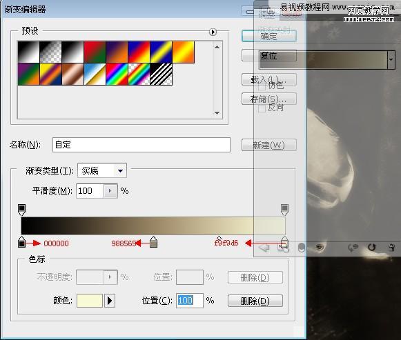 6、下面來為圖像整體疊加色彩。單擊創建新的填充或調整圖層按鈕,在彈出菜單中選擇“漸變映射”命令,設置對話框中的參數如圖7所示,得到如圖8所示效果。