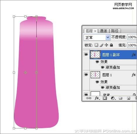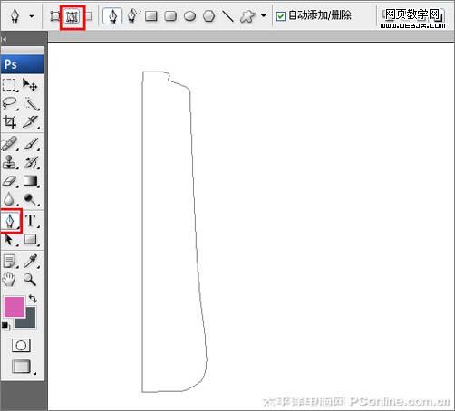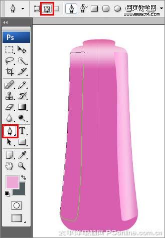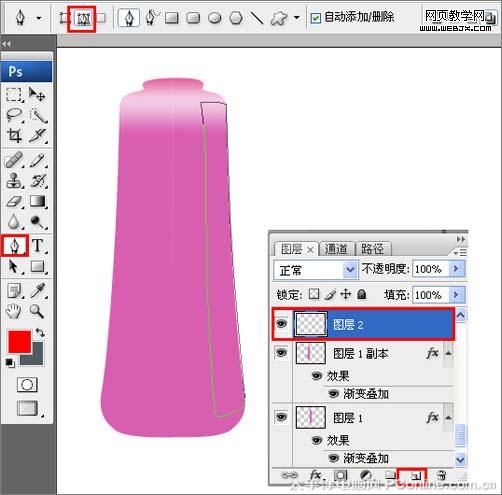 2、在圖層面板上單擊創建新圖層按鈕 ,新建一個圖層,再用鋼筆工具,畫出洗發水瓶的左側,如圖2所示。