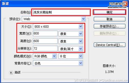 1、打開photoshop cs3軟件,執行菜單:“文件”/“新建”(快捷鍵ctrl+n),彈出的新建對話框,名稱:洗發水瓶繪制,寬度:800像素,高度:600像素,分辨率:72像素/英寸,顏色模式:rgb顏色、8位,背景內容:白色,設置完畢后單擊確定按鈕,如圖1所示。
