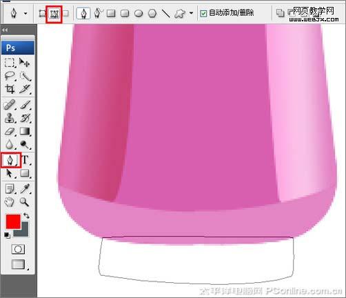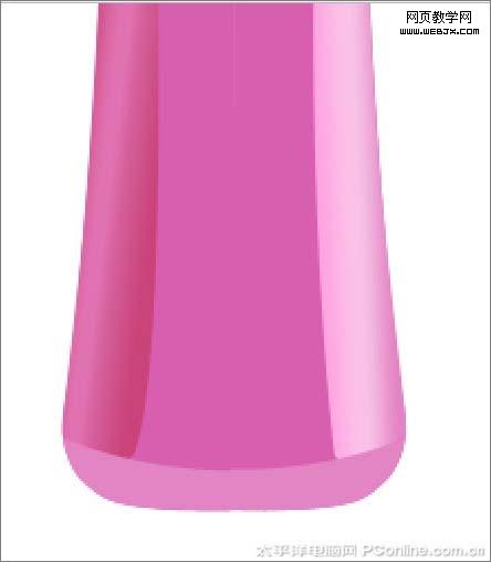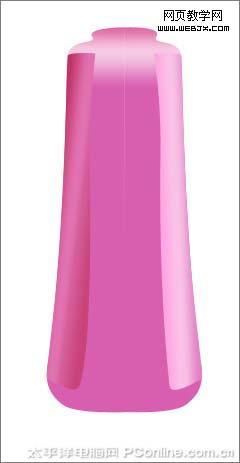 11、在圖層面板上單擊創建新圖層按鈕 ,新建一個圖層,在工具欄中選擇鋼筆工具,在工作區畫出洗發水瓶的底側形狀,在工具箱中選擇設置前景色,設置前景色的顏色rgb值分別為227、132、195,填充給洗發水瓶的底側形狀,按鍵盤快捷鍵alt+delete填充,接著按鍵盤快捷鍵ctrl+d取消選區,如圖14所示。