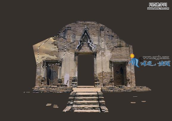 10、選擇套索工具,沿素材3圖像左側繪制其大致的輪廓,直至得到如圖17所示的選區。單擊添加圖層蒙版按鈕,的得到如圖18所示效果哦。