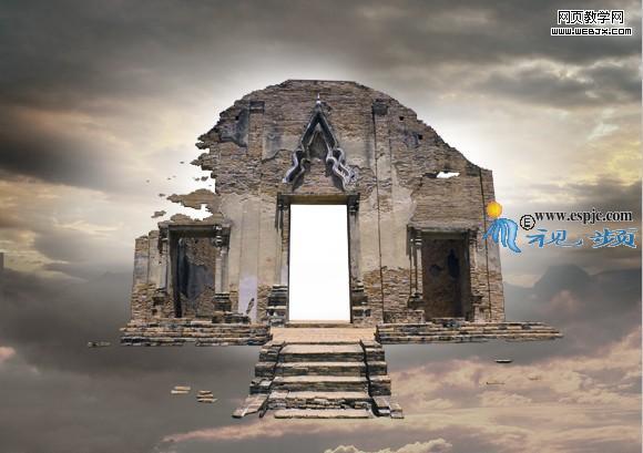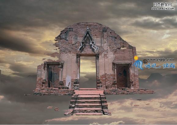 15、打開“素材5”,托至制作的文件中,得到“圖層5”。結合自由變換控制框調整圖像大小及位置,得到如圖29所示效果。按照第2步方法為此圖層添加圖層蒙版以隱藏部分圖像,得到如圖30所示效果。設置此圖層的混合模式為“疊加”,得到效果如圖31所示。
