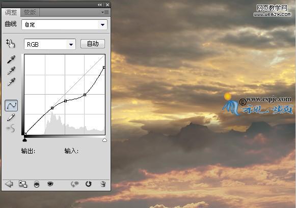 3、單擊創建新的填充或調整圖層,在菜單中選擇“曲線”命令,并設置其對話框如圖4所示,確定后在圖層調板里得到“曲線1”圖層。按ctrl+alt+g常見剪貼蒙版,得到如圖5所示效果。
