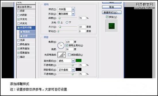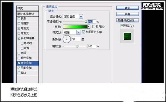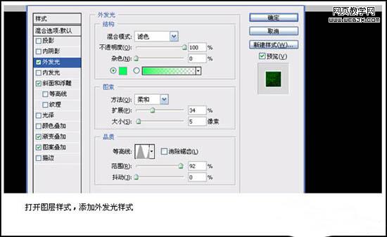 4、打開圖層樣式(圖層 > 圖層樣式 > 外發光),參數設置如下圖。