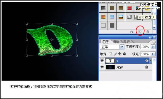 5、打開樣式面板,將剛剛制作的文字圖層樣式保存為新樣式。
