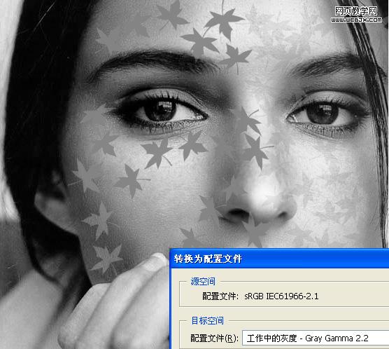 (編輯/轉換為配置文件,目標空間選gray gamma 2.2,點確定。rgb模式轉換為灰度模式。)