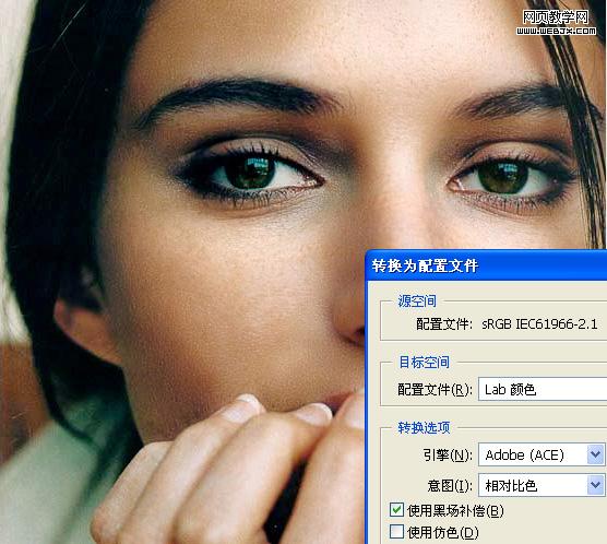 (編輯/轉換為配置文件,目標空間選擇lab顏色,點確定。rgb模式轉換為lab模式。)