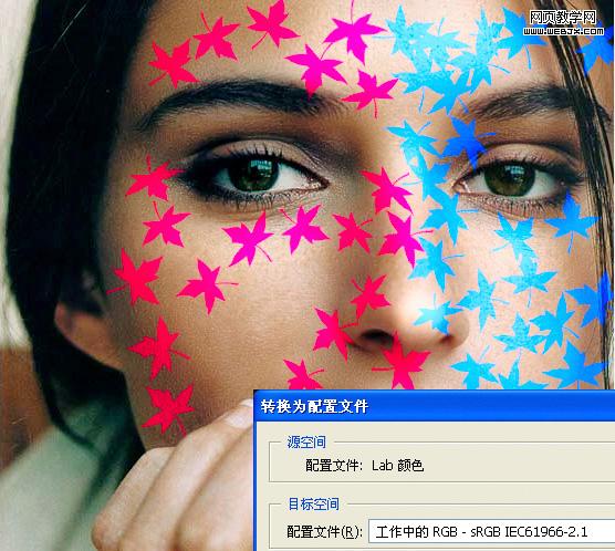 (編輯/轉換為配置文件,目標空間選srgb, 點確定。lab模式轉換為rgb模式。)