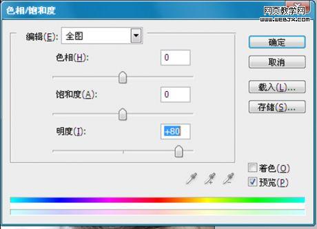 然后,ctrl+alt+1選取紅色通道,ctrl+j復制出來,ctrl+u進入(色相飽和度),明度改為+80,確定。