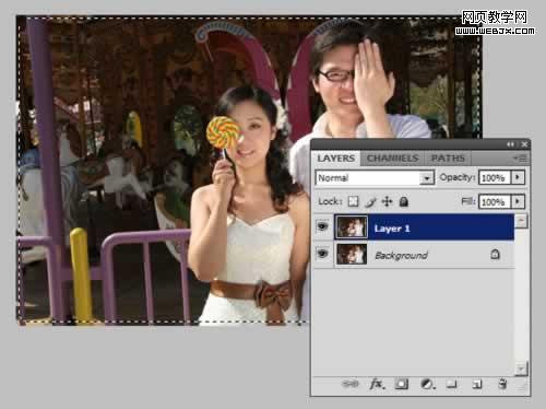 這時候我們就要開始提取圓角的圖像了,這個時侯我們在圖層面板選擇路徑選項卡,可以看到一個圓角矩形的工作路徑,按住ctrl鍵,點擊工作路徑。活的圓角矩形的選區。