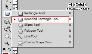 使用圓角矩形工具,首選選擇矩形工具,點擊鼠標不松開,矩形工具區就回彈出多個選項,這個時候你就可以選擇到圓角矩形工具了。