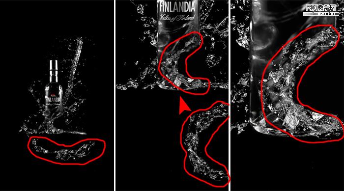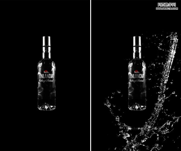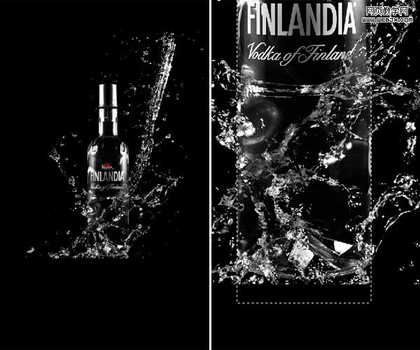 調(diào)整水花的大小和位置,使用矩形選框工具把瓶子選擇出來,在選區(qū)內(nèi)右擊鼠標(biāo),選擇,并選擇“通過剪切的圖層”,效果如下。