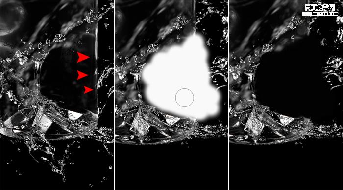 創(chuàng)建一個新圖層,然后使用白色的柔筆刷將瓶子刷白,然后按ctrl+i反相,如下提示。