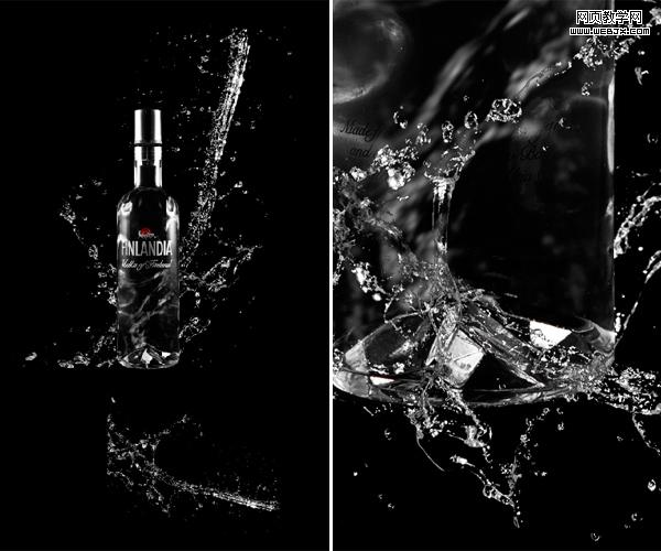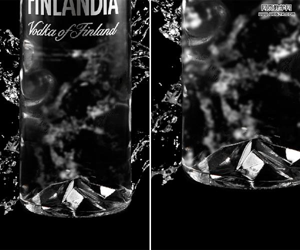 把剛剛建立的剪切圖層模式調(diào)整為濾色模式,然后執(zhí)行高斯模糊,模糊半徑為3px,使之看上去水花像是在瓶子的后面。
