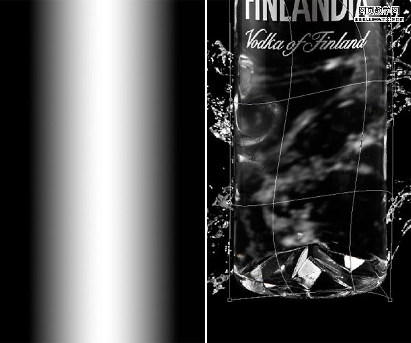 給該圖層添加圖層蒙板,然后使用漸變填充效果如下。然后執(zhí)行編輯 >> 變換 >> 變形命令對瓶子進(jìn)行變形調(diào)整。