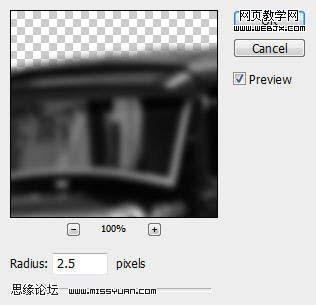 13、復制汽車圖層兩次。在汽車1副本圖層里:濾鏡-模糊-高斯模糊,半徑:2.5像素,見下圖: