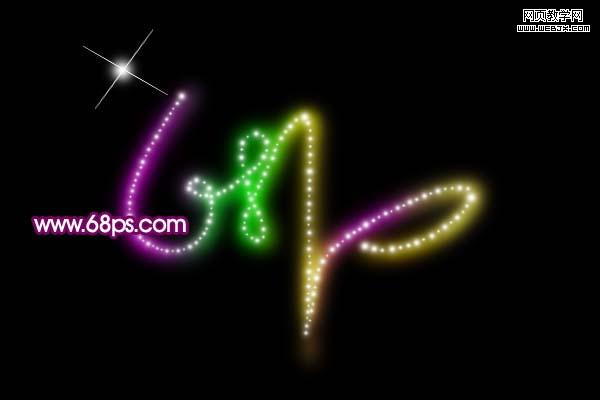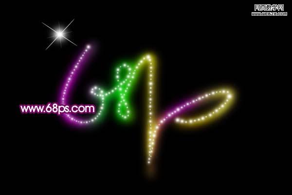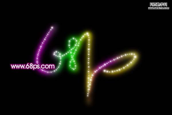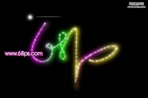 8、新建一個(gè)圖層,用白色畫(huà)筆沿著文字路徑點(diǎn)上一些連續(xù)的白點(diǎn),也可以定義好畫(huà)筆描邊,效果如圖11。
