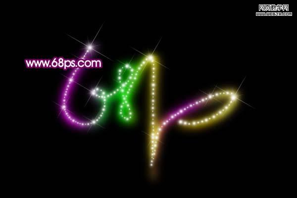 12、把剛才制作的星光效果的幾個(gè)圖層合并,然后多復(fù)制一些放到文字不同位置如圖17,18。