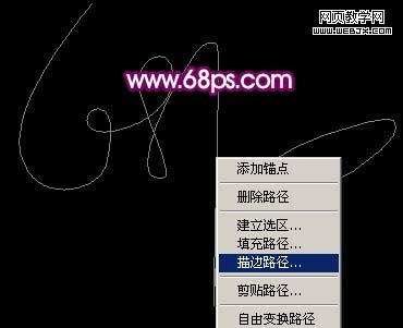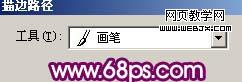 3、選擇鋼筆工具在路徑上面按鼠標(biāo)右鍵,選擇“描邊路徑”,如圖3,在彈出的菜單選擇畫(huà)筆工具,如圖4,然后確定,效果如圖5。
